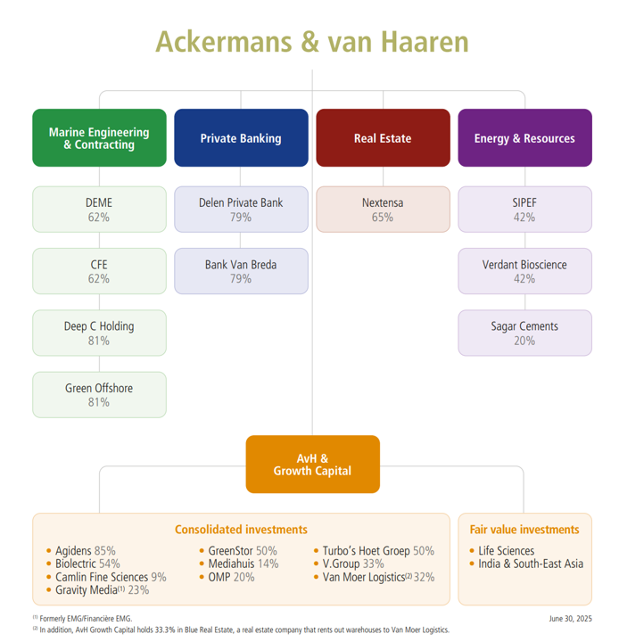 Ackermans & van Haaren est un groupe diversifié, actif dans Marine Engineering & Contracting, Private Banking, Real Estate , Energy & Resources et Growth Capital.