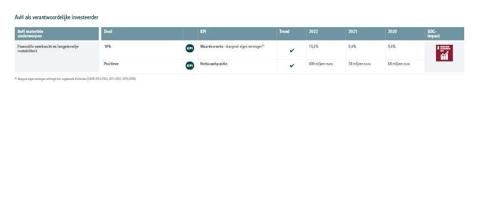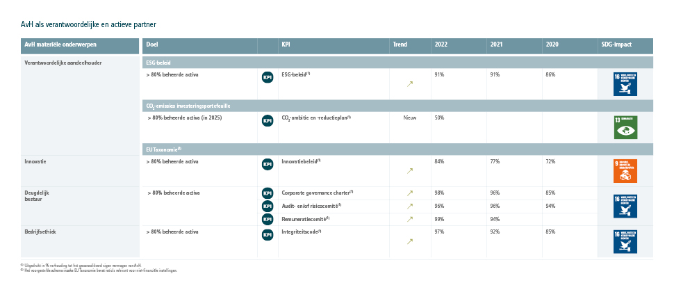 AvH beschouwt haar rol als verantwoord aandeelhouder als één van haar belangrijkste hefbomen in het kader van haar ESG-beleid. Dit sluit aan bij de doelstellingen van SDG 16 die toezien op goed bestuur.