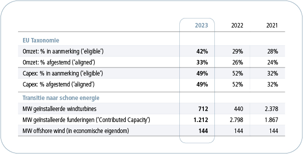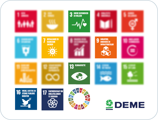 DEME is actief in de gespecialiseerde domeinen van baggerwerken, oplossingen voor de offshore energie-industrie, maritieme infrastructuur- en milieuwerken. DEME voerde een dubbele materialiteitsbeoordeling uit waarbij 'energietransitie', 'uitstoot van broeikasgassen' en 'gezondheid en veiligheid op het werk' werden geïdentificeerd als factoren die een impact kunnen hebben op het bedrijfsmodel van het bedrijf of een impact kunnen hebben op de samenleving. In het kader van zijn strategie om de overgang naar schone energie te ondersteunen, werkt DEME mee aan projecten voor offshore windmolenparken in Europa, Azië en de VS. Bovendien streeft het V&G-beleid van DEME ernaar om de negatieve gevolgen voor de werknemers tot een minimum te beperken, met als doel een 'Zero Harm Goal'.